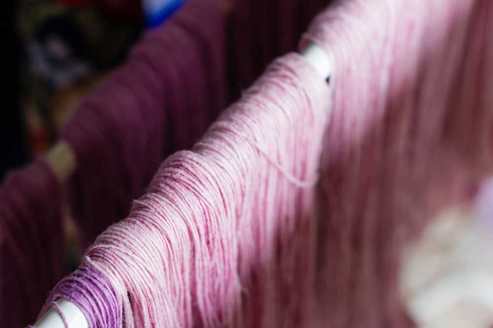 ‘The process of manufacturing a handloom is quite simple and straightforward,’ says Utthara John, a second general Kerala-based textile entrepreneur. ‘Although some advancements in terms of technology have occurred, the basic process of handloom weaving has remained the same for centuries now, making it one of the most sustainable manufacturing processes. One selects the fibre, such as cotton or silk, and converts it to yarn through the weaving process. This weaving process varies depending on the nature of the fibre and intended weave. The yarns are then dyed. Although there was a time when chemical dyes made inroads into the handloom industry, there is increased awareness among weavers and consumers to embrace organic and chemical-free dyes again. This is still one of the problem areas though. Once we are able to minimise toxic chemicals, it will go a long way in making the industry sustainable. After the yarn is dyed, bobbin winding and warping take place to create the actual fabric. The warp yarns are sized, dressed and wound, then attached to a loom. Weft yarn winding also takes place, after which the fabric is woven and the final handloom product emerges. Final touches such as block print or embroidery are then implemented.’