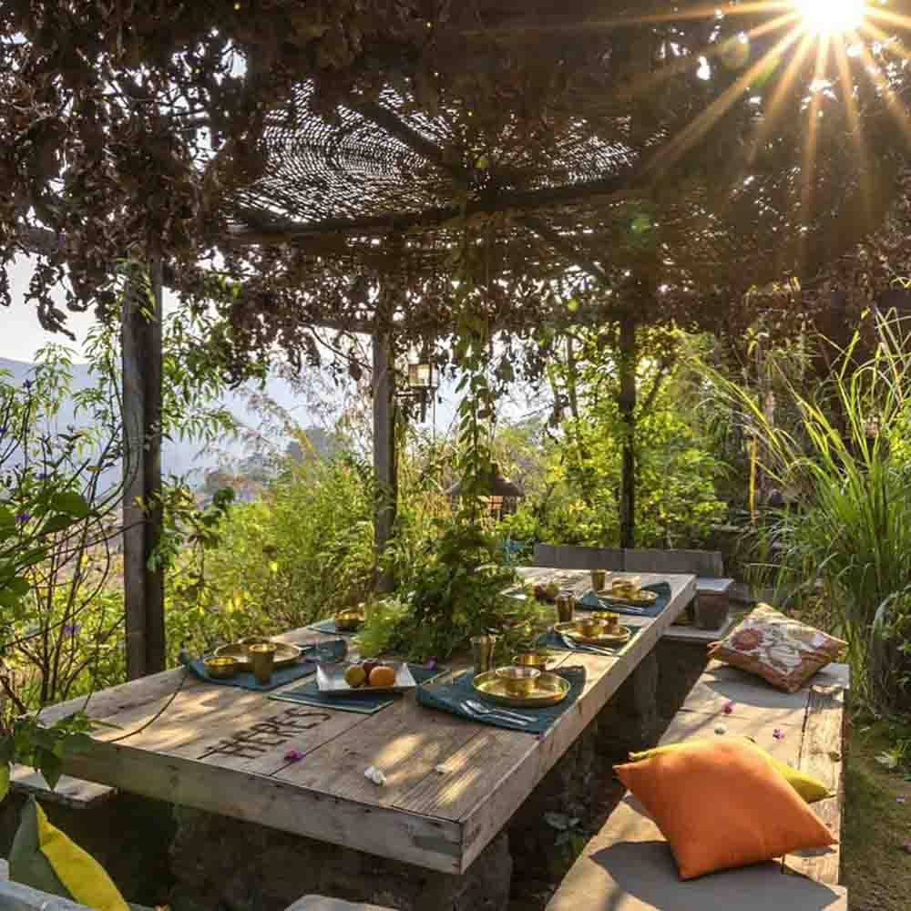 The Fragrant Sun is an eco-friendly, remote homestay by the Mulshi lake - a 3.5-hour drive from Mumbai. Made of mud, bricks and wood, the owners, Kavita and Sanjeev Berry, are passionate about sustainable living. The property was nominated for the Responsible Tourism India Award 2018 for the Best Earth Home. You can savour exotic meals with a local twist including tacos and salads on the sewing machine-styled tables or wood-fired pizzas for dinner by the bonfire.